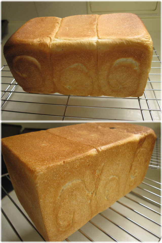 | さつまいもの仕上がり具合と湿度により、べたつきやすい生地でしたが きれいな角食パンが焼きあがりました。